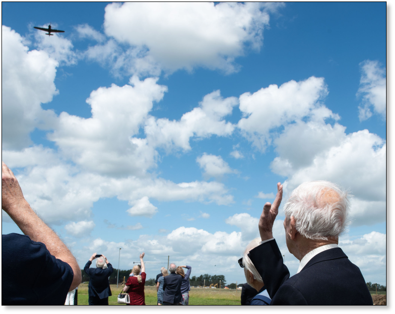 Departing the reunion, the aircraft overflew the ‘Feast’ event taking place on Waterbeach village green.